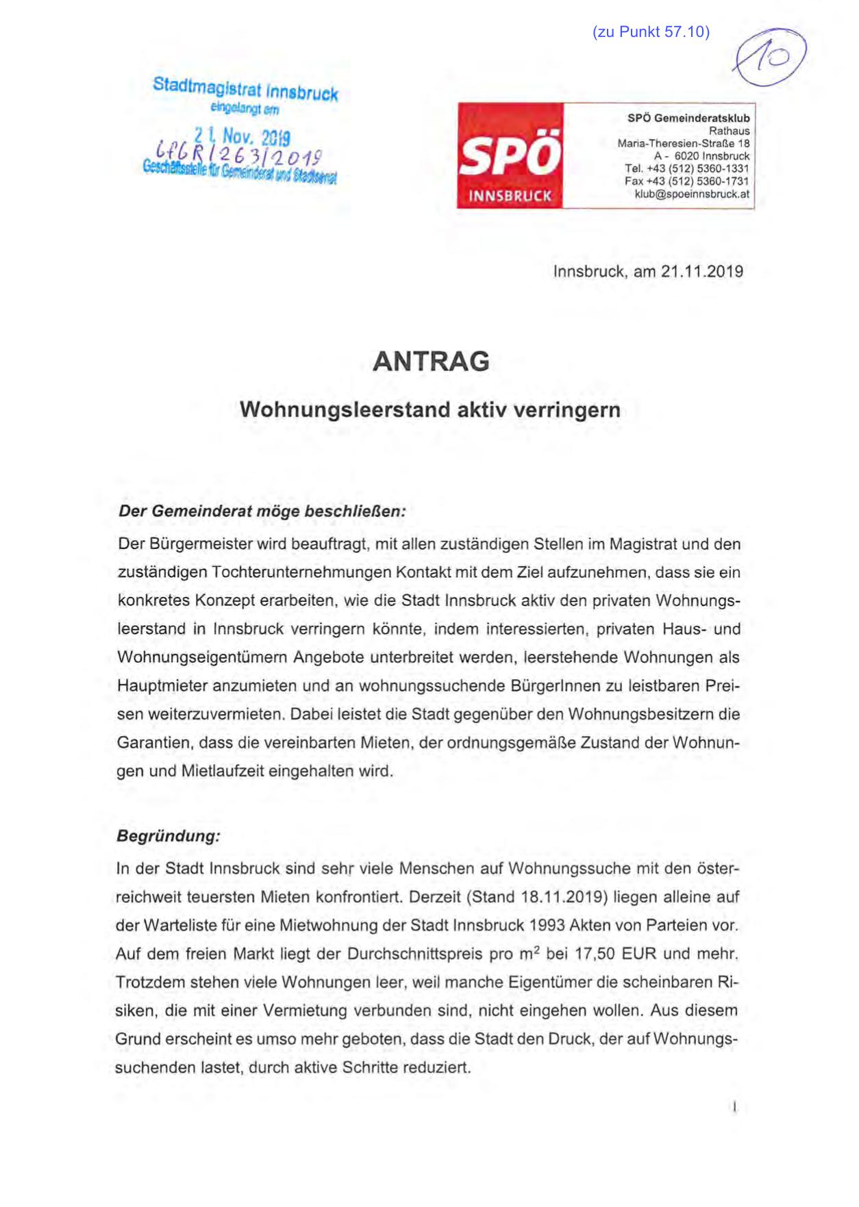 konkretes Konzept erarbeiten, wie die Stadt Innsbruck aktiv den privaten Wohnungsleerstand in Innsbruck verringern könnte , indem interessierten , privaten Haus- und