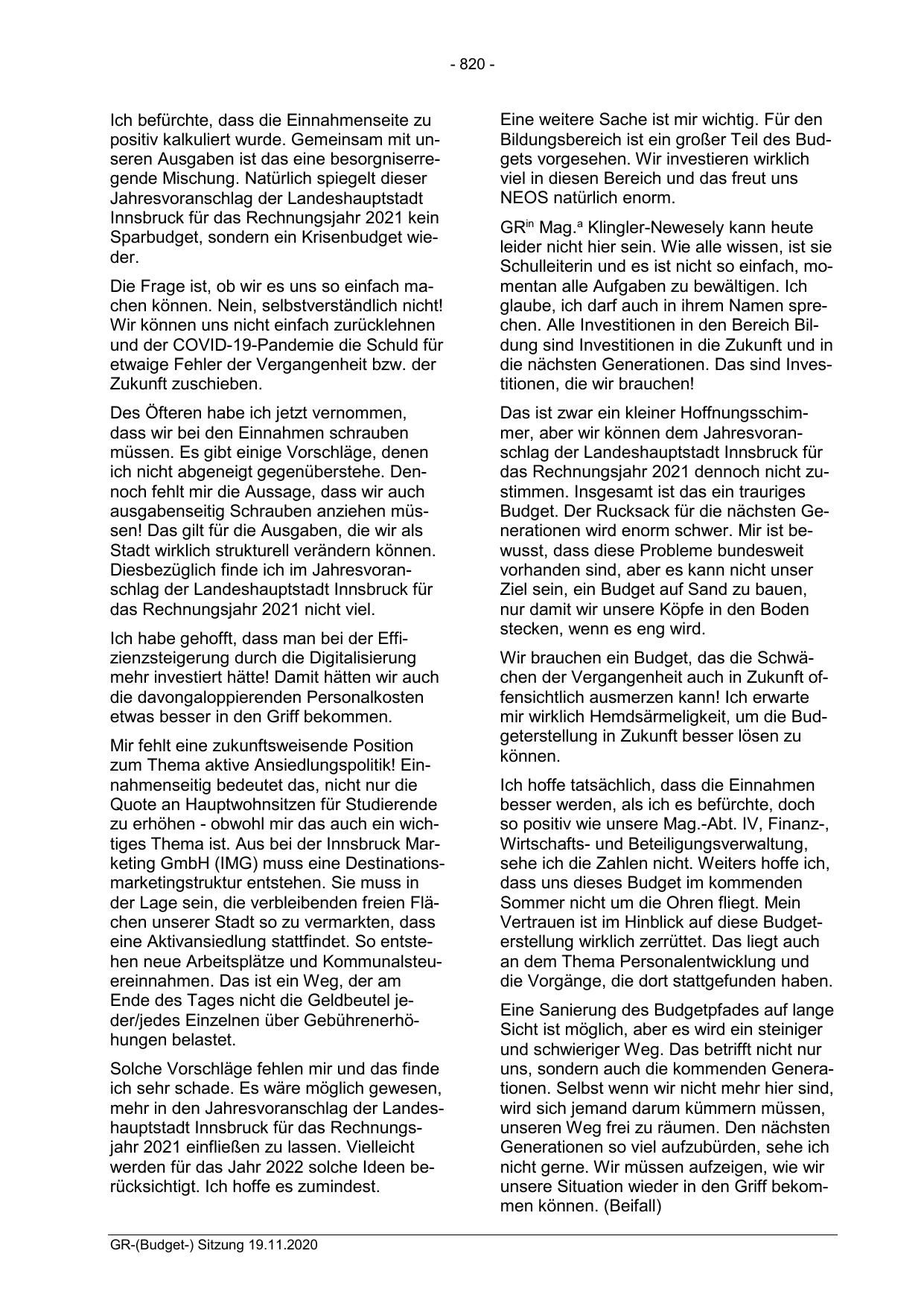 mehr in den Jahresvoranschlag der Landeshauptstadt Innsbruck für das Rechnungsjahr 2021 einfließen zu lassen. Vielleicht