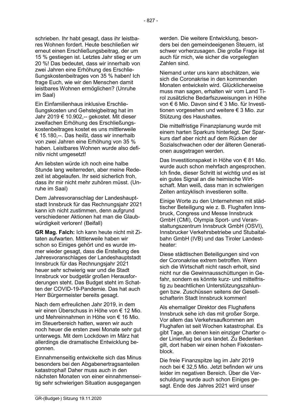 Innsbruck vor budgetär großen Herausforderungen steht. Das Budget steht im Schatten der COVID-19-Pandemie. Das hat auch