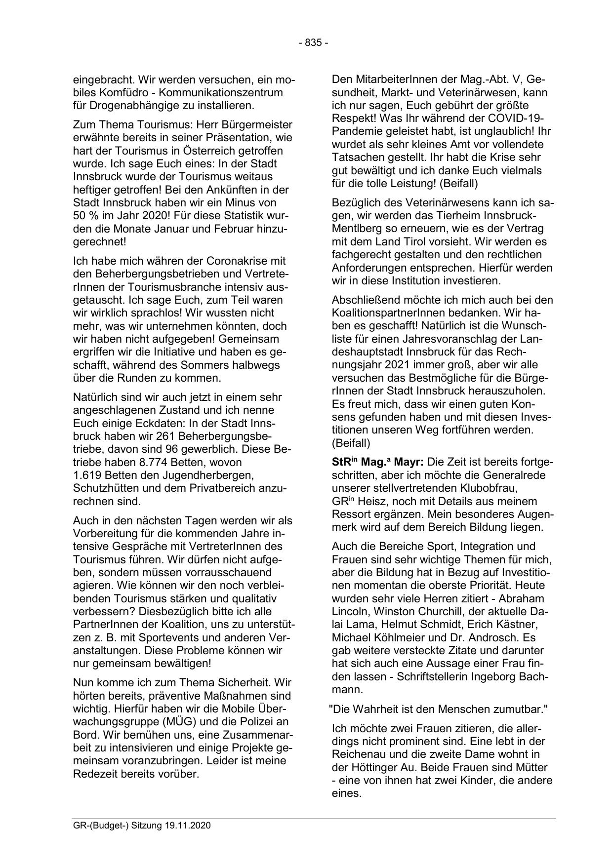 KoalitionspartnerInnen bedanken. Wir haben es geschafft! Natürlich ist die Wunschliste für einen Jahresvoranschlag der Landeshauptstadt Innsbruck für das Rechnungsjahr 2021 immer groß, aber wir alle