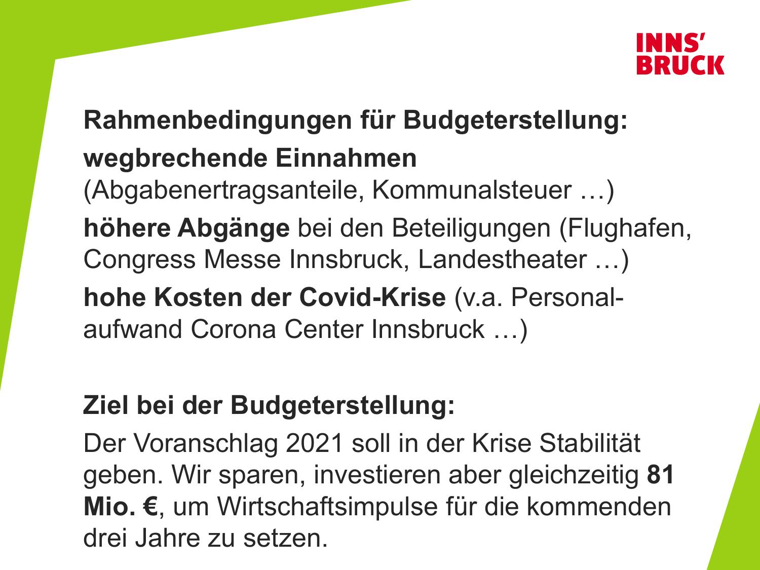 hohe Kosten der Covid-Krise (v.a. Personalaufwand Corona Center Innsbruck …)
