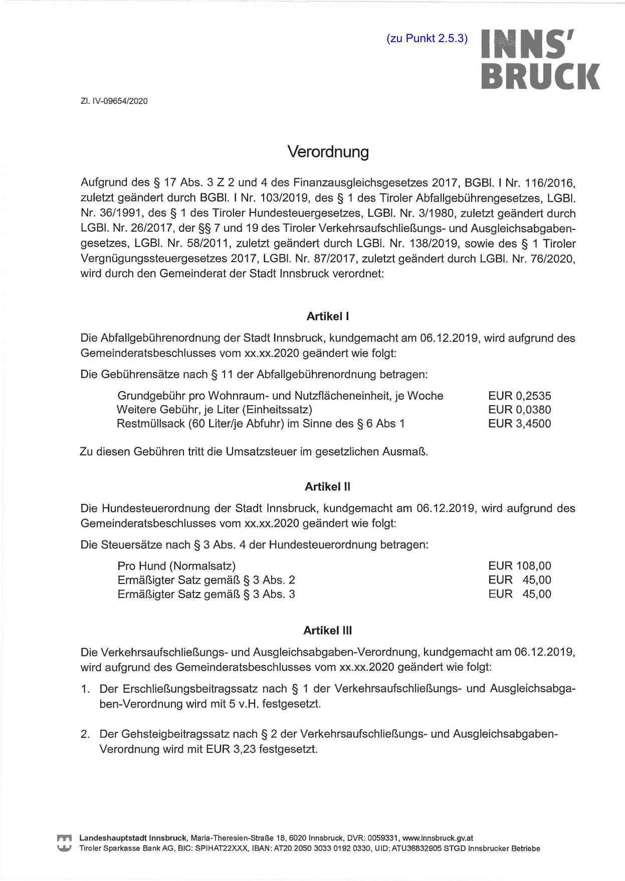 Die Abfallgebührenordnung der Stadt Innsbruck, kundgemacht am 06.12.2019, wird aufgrund des