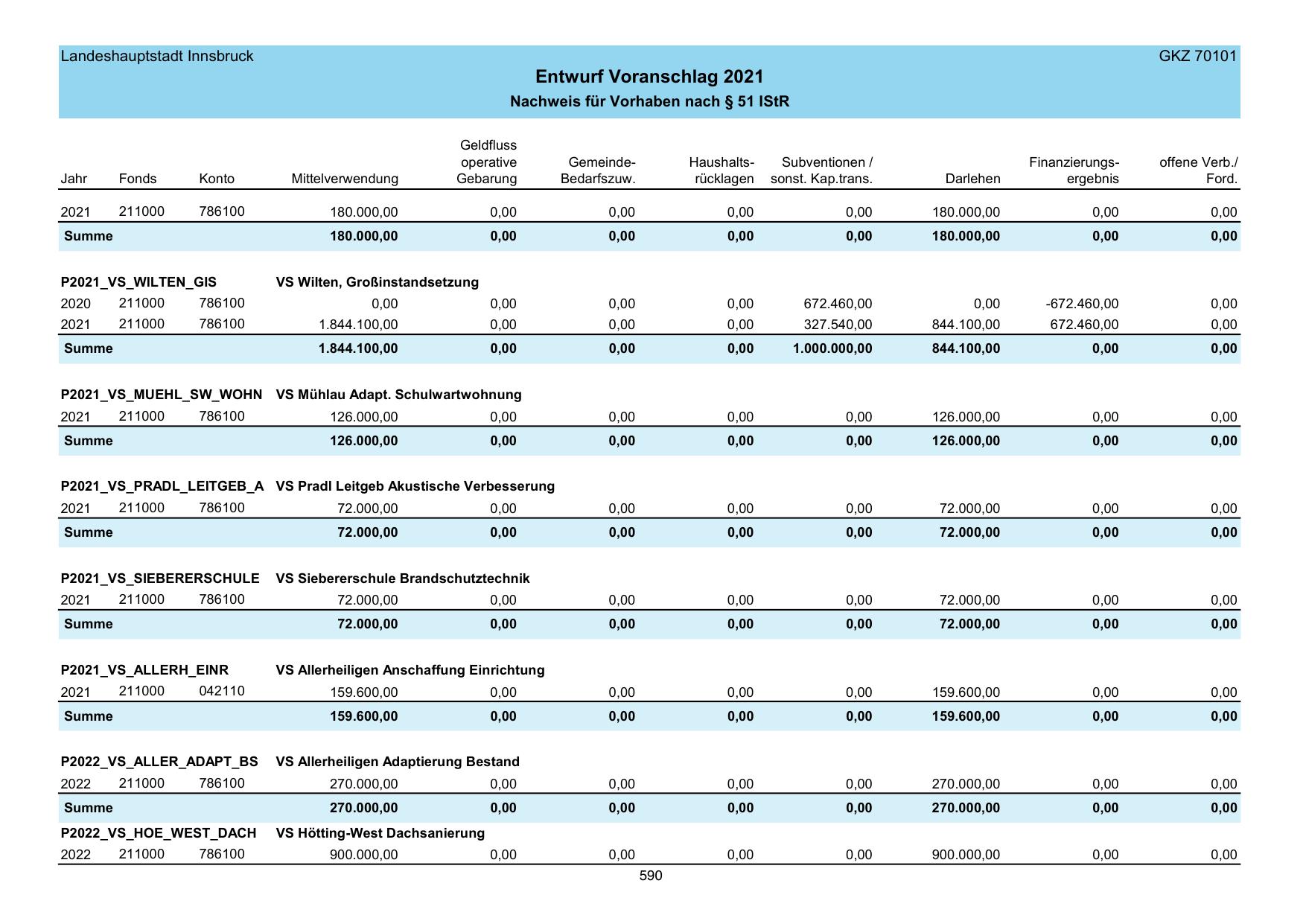 Entwurf Voranschlag 2021