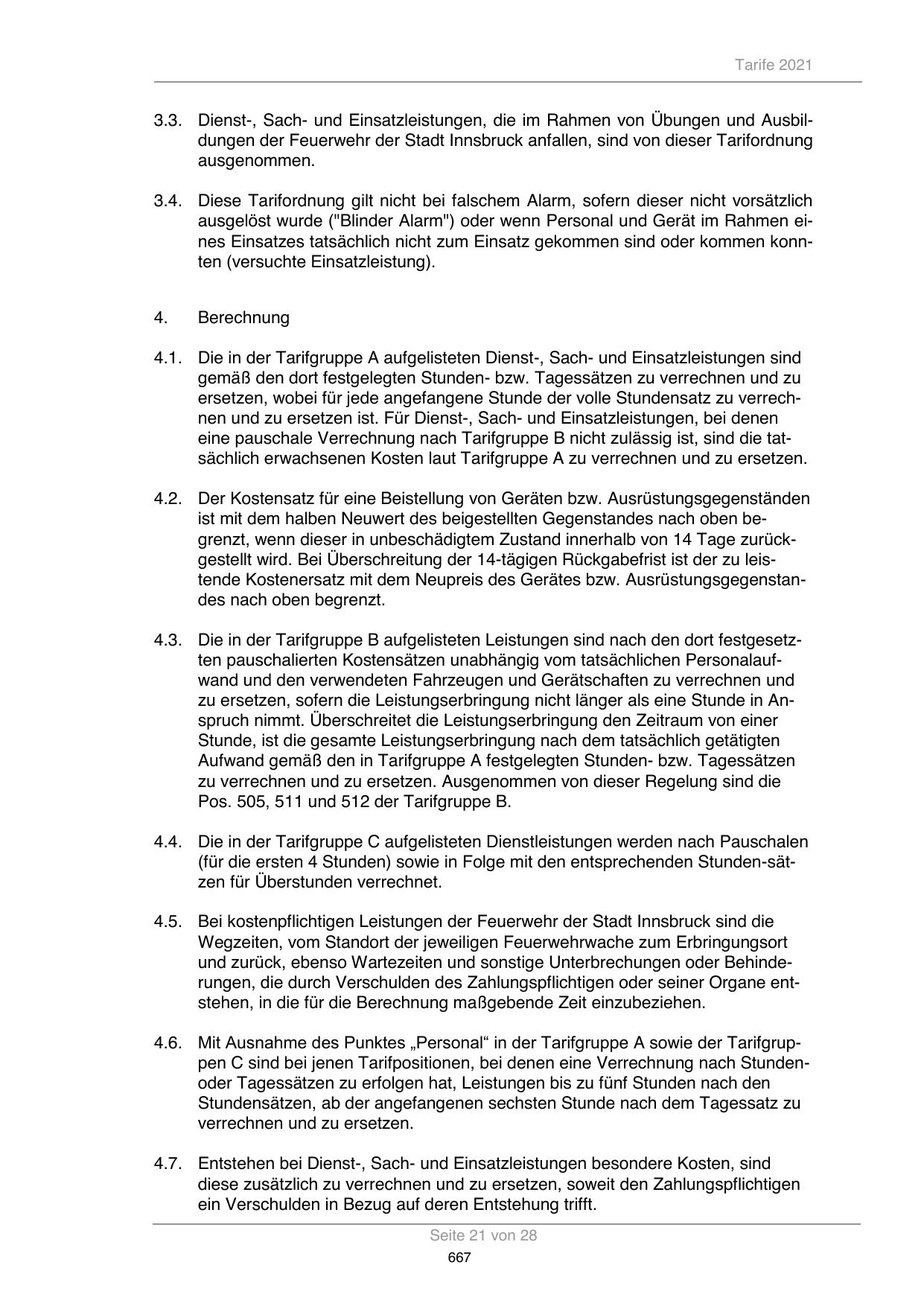 4.5. Bei kostenpflichtigen Leistungen der Feuerwehr der Stadt Innsbruck sind die