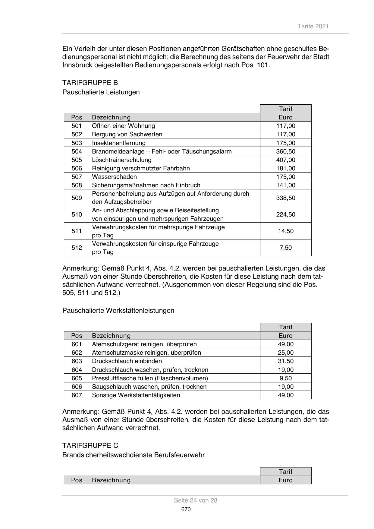 Innsbruck beigestellten Bedienungspersonals erfolgt nach Pos. 101.