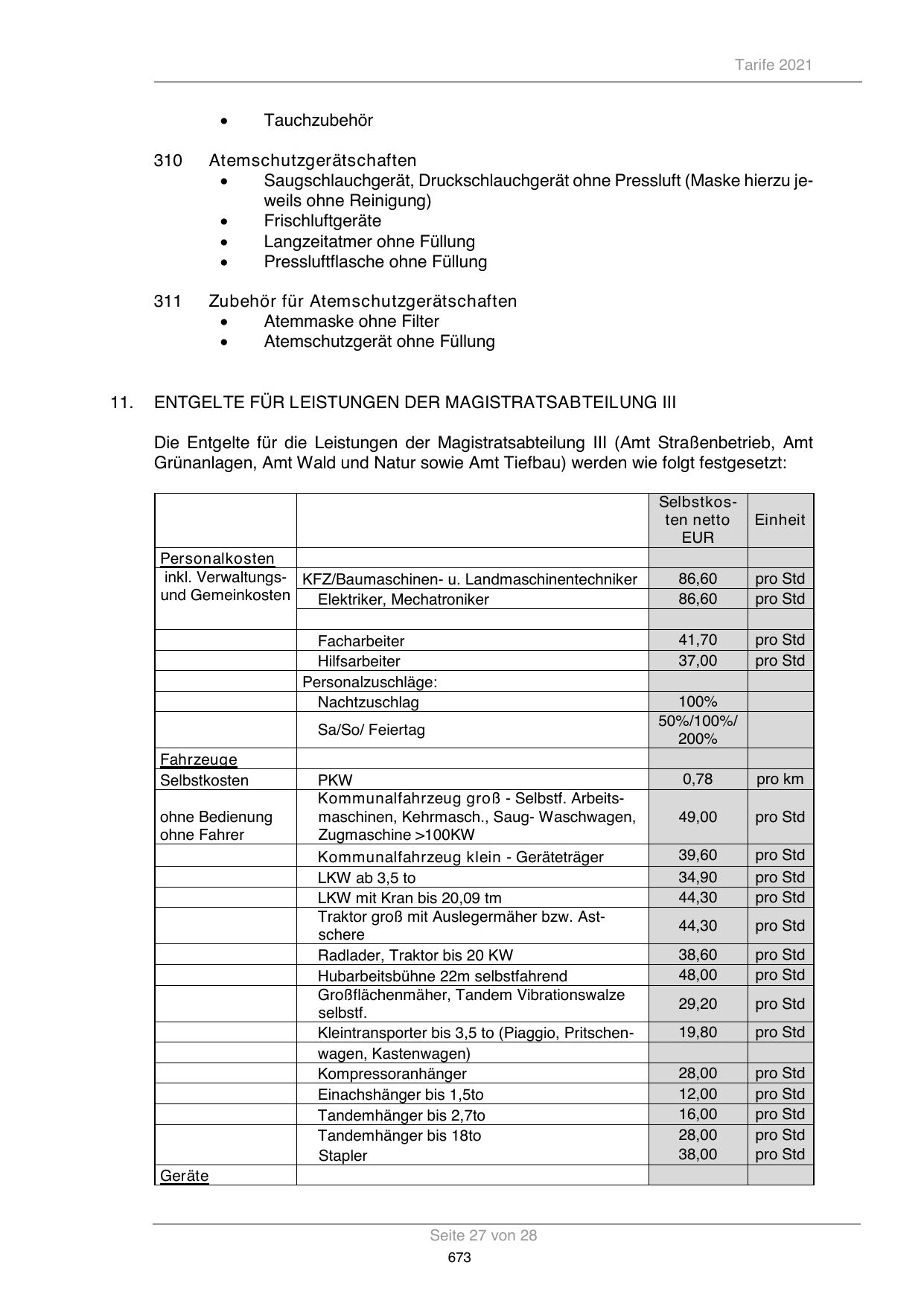 ENTGELTE FÜR LEISTUNGEN DER MAGISTRATSABTEILUNG III