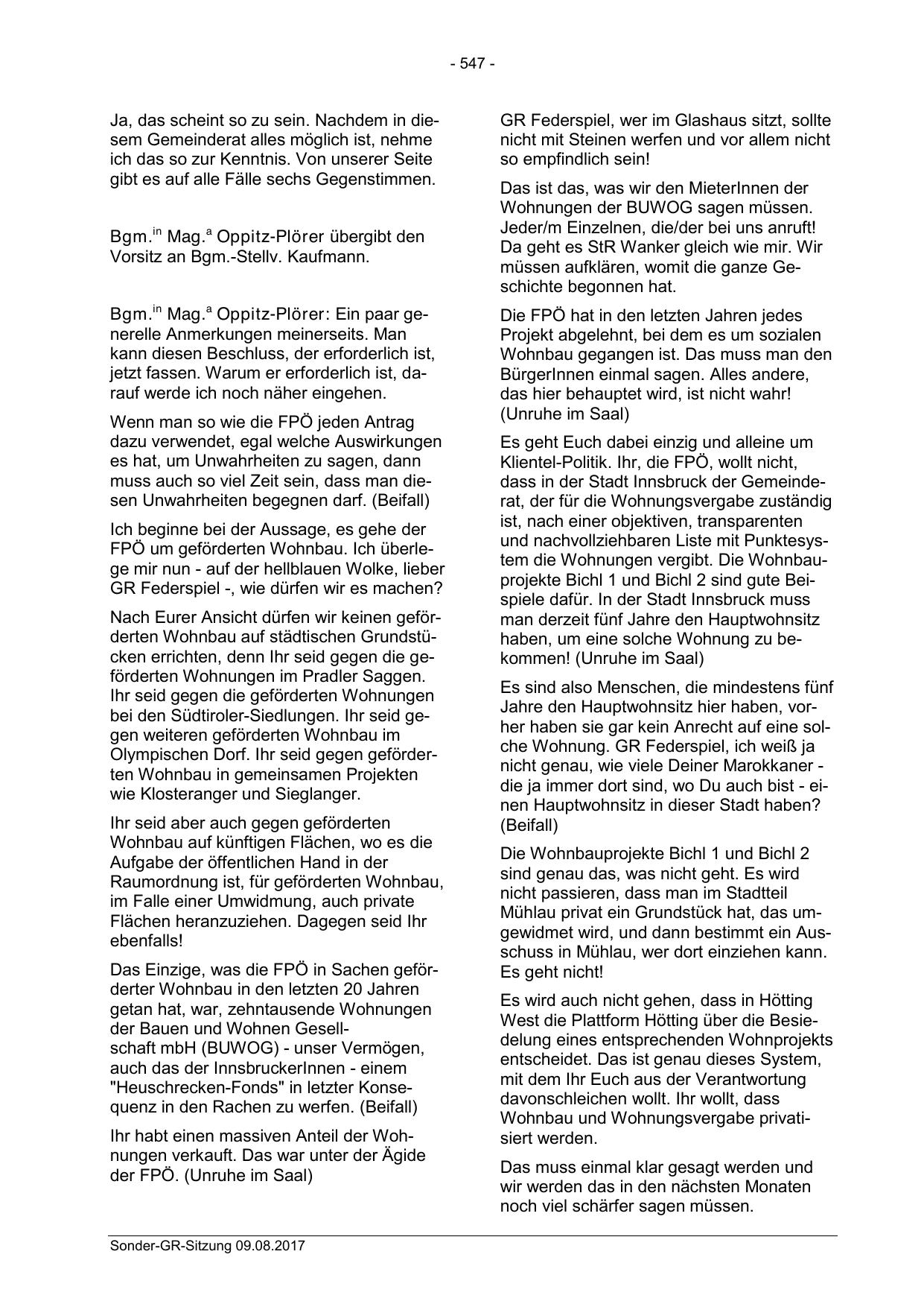 und nachvollziehbaren Liste mit Punktesystem die Wohnungen vergibt. Die Wohnbauprojekte Bichl 1 und Bichl 2 sind gute Beispiele dafür. In der Stadt Innsbruck muss