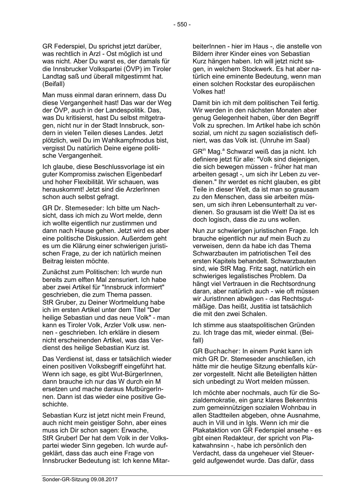 Innsbrucker Bedeutung ist: Ich kenne MitarSonder-GR-Sitzung 09.08.2017