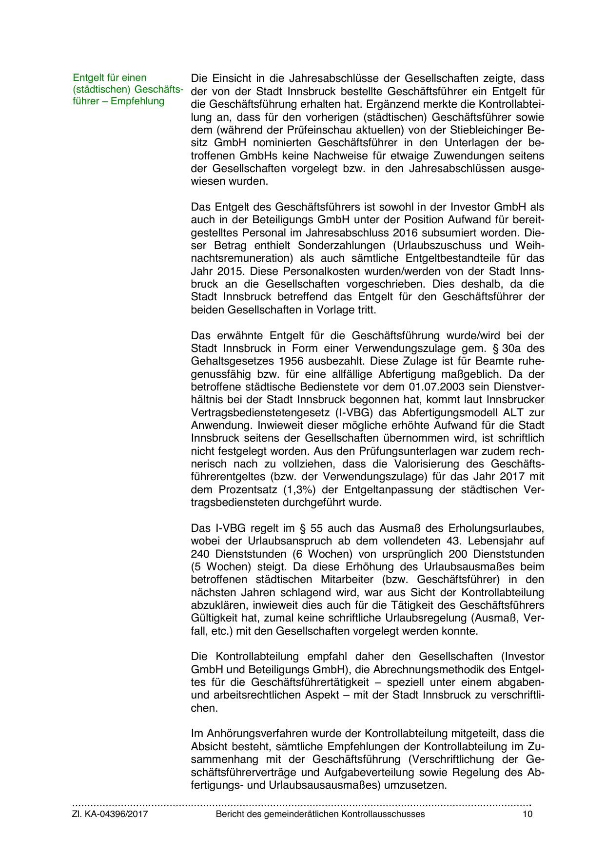 (städtischen) Geschäfts- der von der Stadt Innsbruck bestellte Geschäftsführer ein Entgelt für