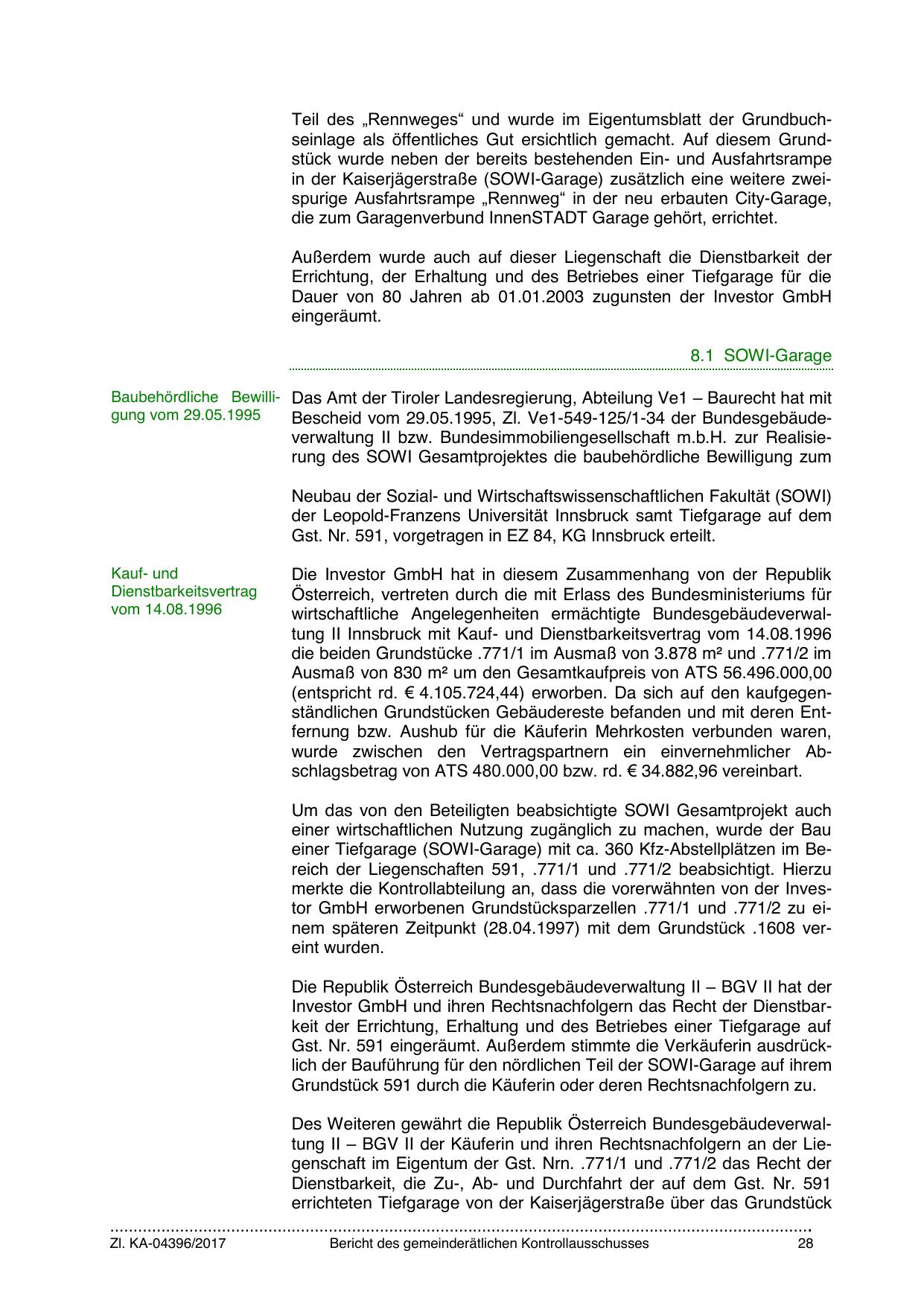 einer Tiefgarage (SOWI-Garage) mit ca. 360 Kfz-Abstellplätzen im Bereich der Liegenschaften 591, .771/1 und .771/2 beabsichtigt. Hierzu