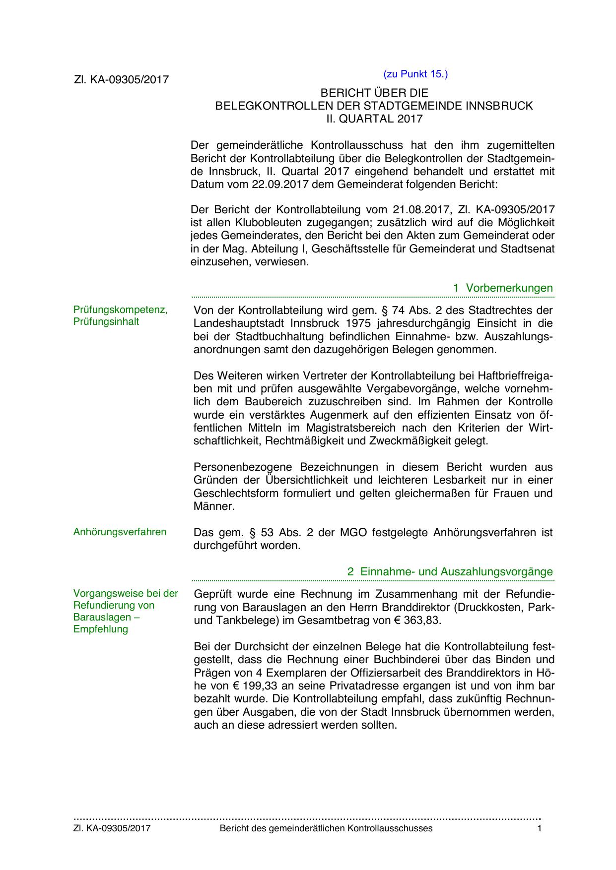BELEGKONTROLLEN DER STADTGEMEINDE INNSBRUCK