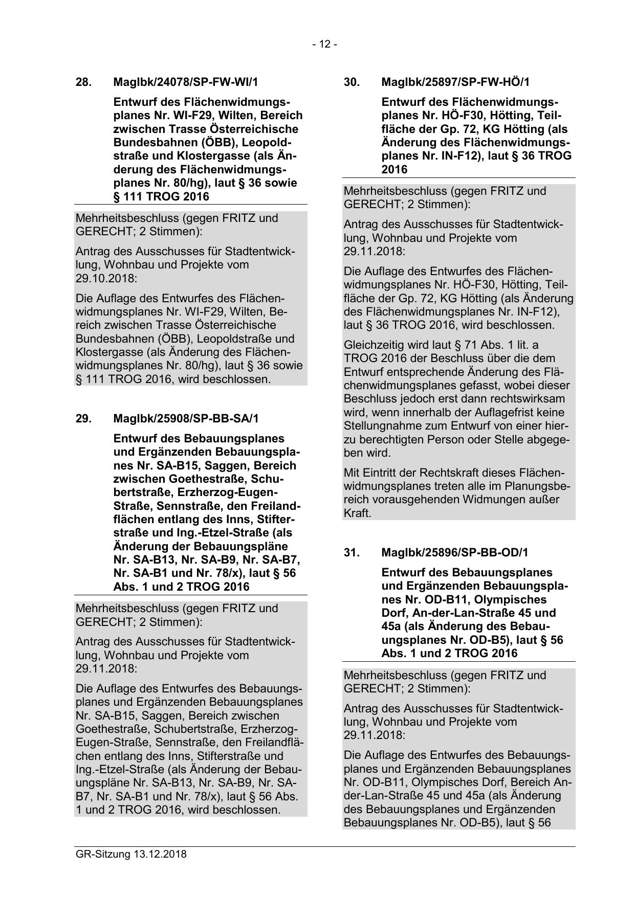 Änderung des Flächenwidmungsplanes Nr. IN-F12), laut § 36 TROG
