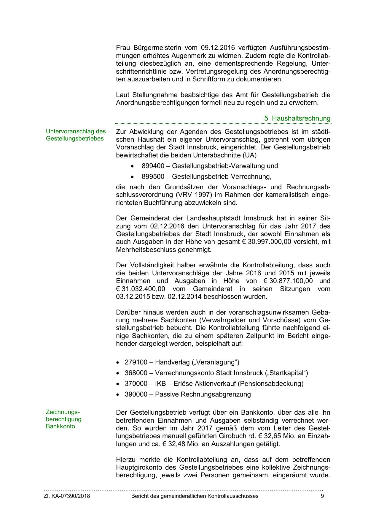 betreffenden Einnahmen und Ausgaben selbständig verrechnet werden. So wurden im Jahr 2017 gemäß dem vom Leiter des Gestellungsbetriebes manuell geführten Girobuch rd. € 32,65 Mio. an Einzahlungen und ca. € 32,48 Mio. an Auszahlungen getätigt.