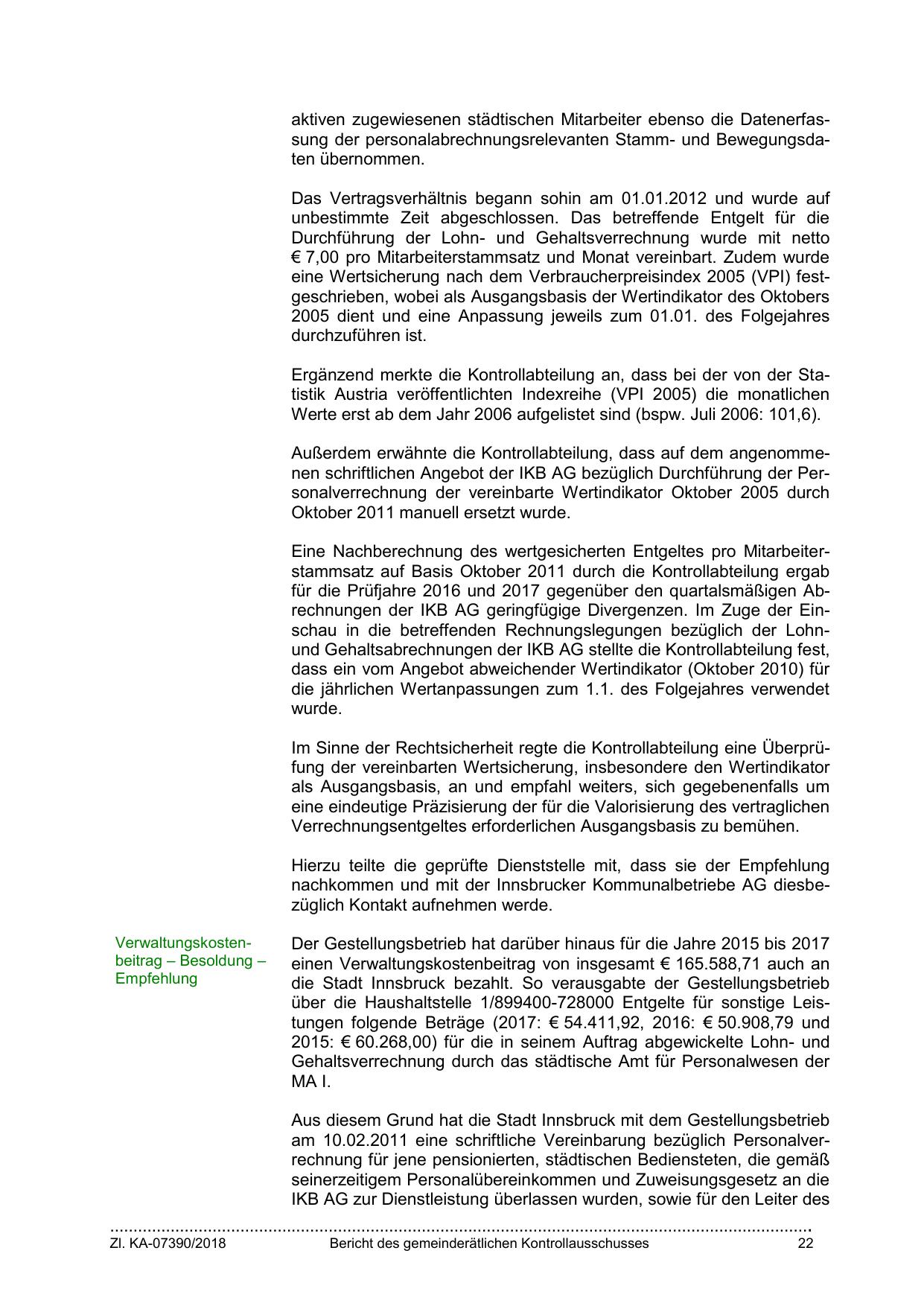 für die Prüfjahre 2016 und 2017 gegenüber den quartalsmäßigen Abrechnungen der IKB AG geringfügige Divergenzen. Im Zuge der Einschau in die betreffenden Rechnungslegungen bezüglich der Lohnund Gehaltsabrechnungen der IKB AG stellte die Kontrollabteilung fest,