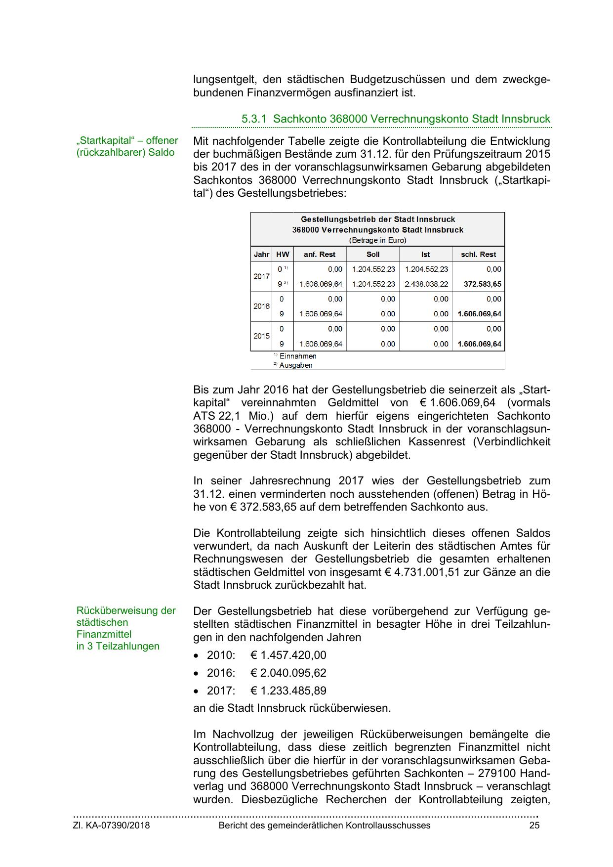 5.3.1 Sachkonto 368000 Verrechnungskonto Stadt Innsbruck