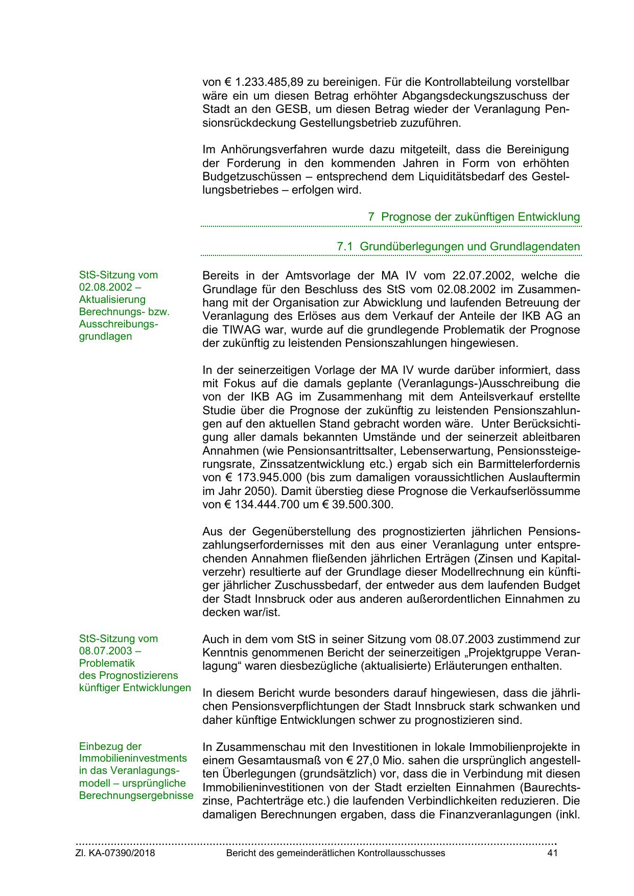 In diesem Bericht wurde besonders darauf hingewiesen, dass die jährlichen Pensionsverpflichtungen der Stadt Innsbruck stark schwanken und