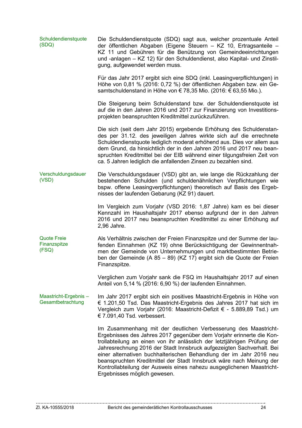 Jahresrechnung 2016 der Stadt Innsbruck aufgezeigten Sachverhalt. Bei
