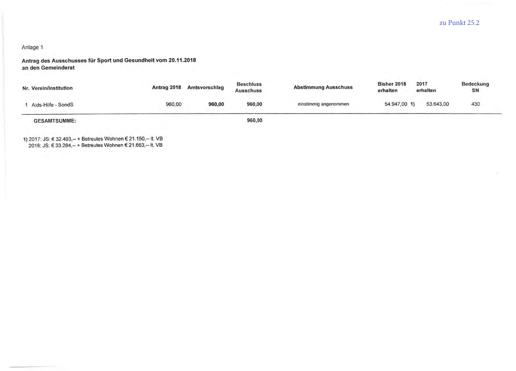 2018: JS: € 33.284,- + Betreutes Wohnen€ 21 .663,- lt. VB