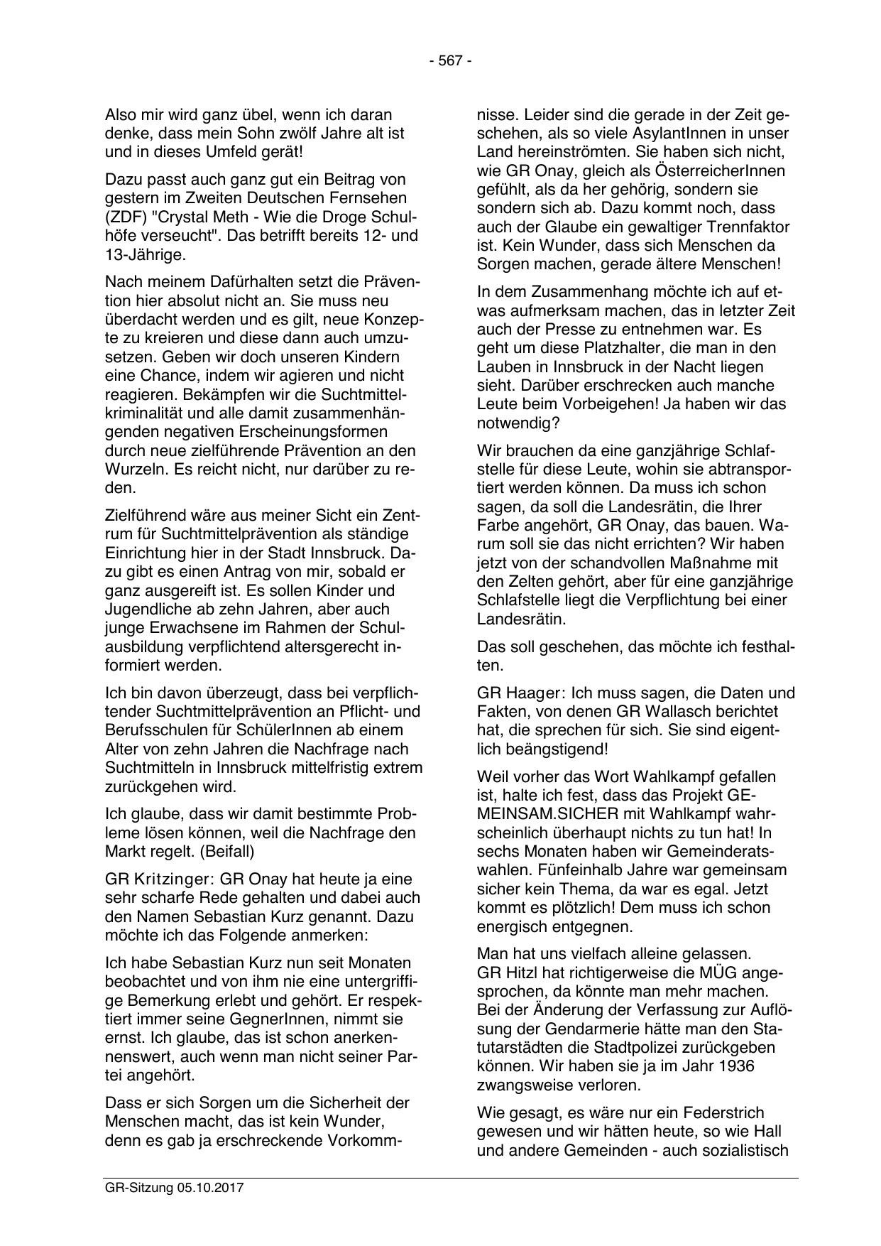 denn es gab ja erschreckende VorkommGR-Sitzung 05.10.2017