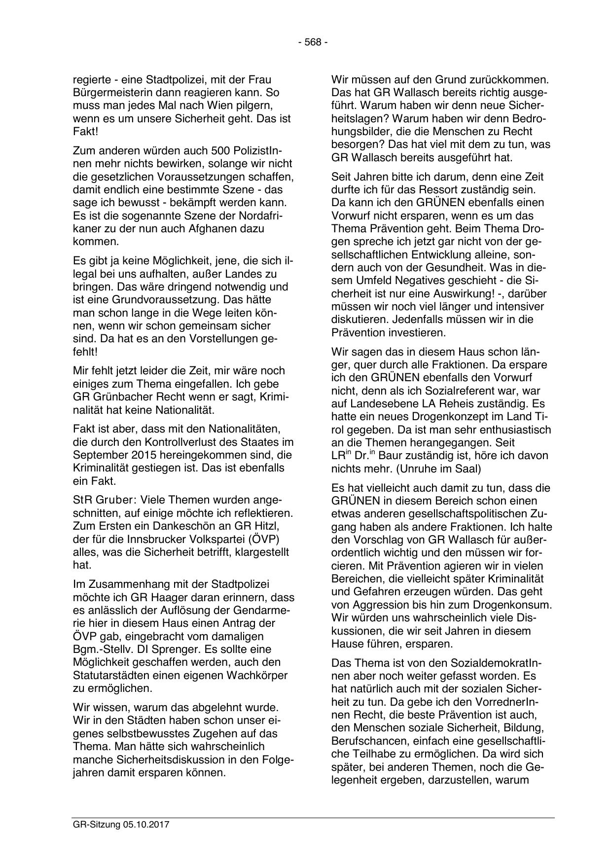 StR Gruber: Viele Themen wurden angeschnitten, auf einige möchte ich reflektieren.