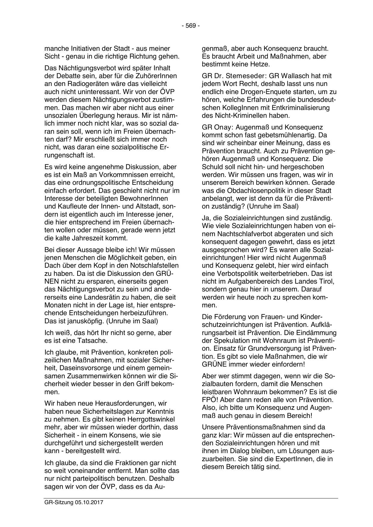 sagen wir von der ÖVP, dass es da AuGR-Sitzung 05.10.2017