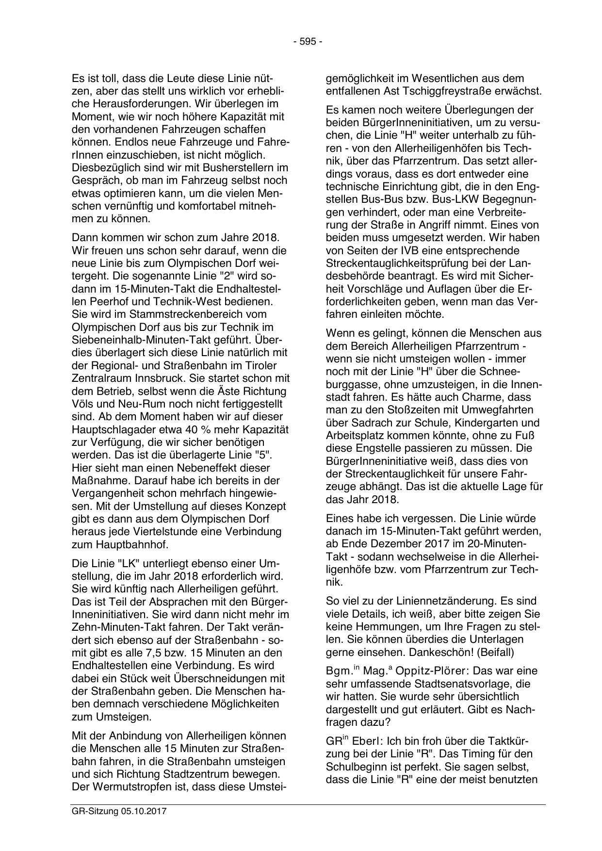 GRin Eberl: Ich bin froh über die Taktkürzung bei der Linie "R". Das Timing für den