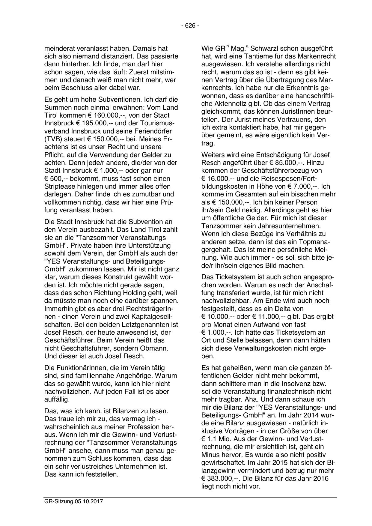 (TVB) steuert € 150.000,-- bei. Meines Erachtens ist es unser Recht und unsere