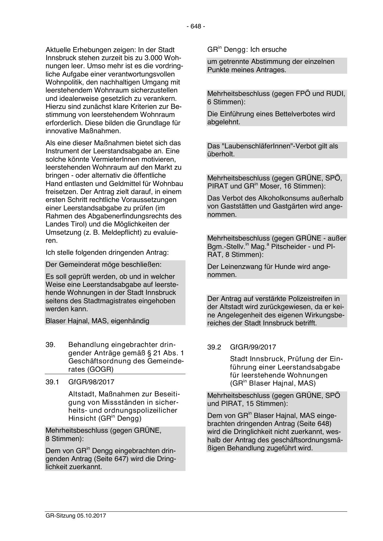 Dem von GRin Dengg eingebrachten dringenden Antrag (Seite 647) wird die Dringlichkeit zuerkannt.