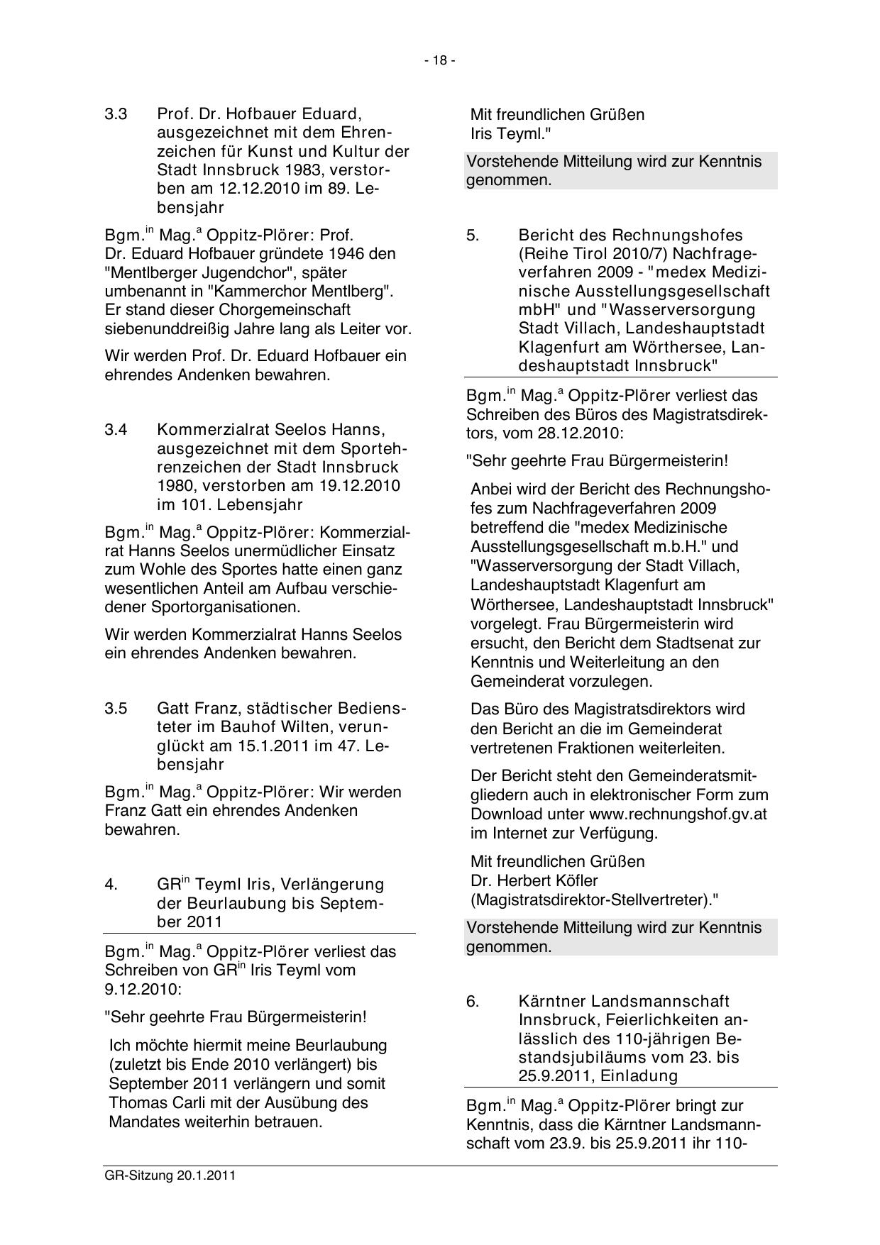 GR-Sitzung 20.1.2011