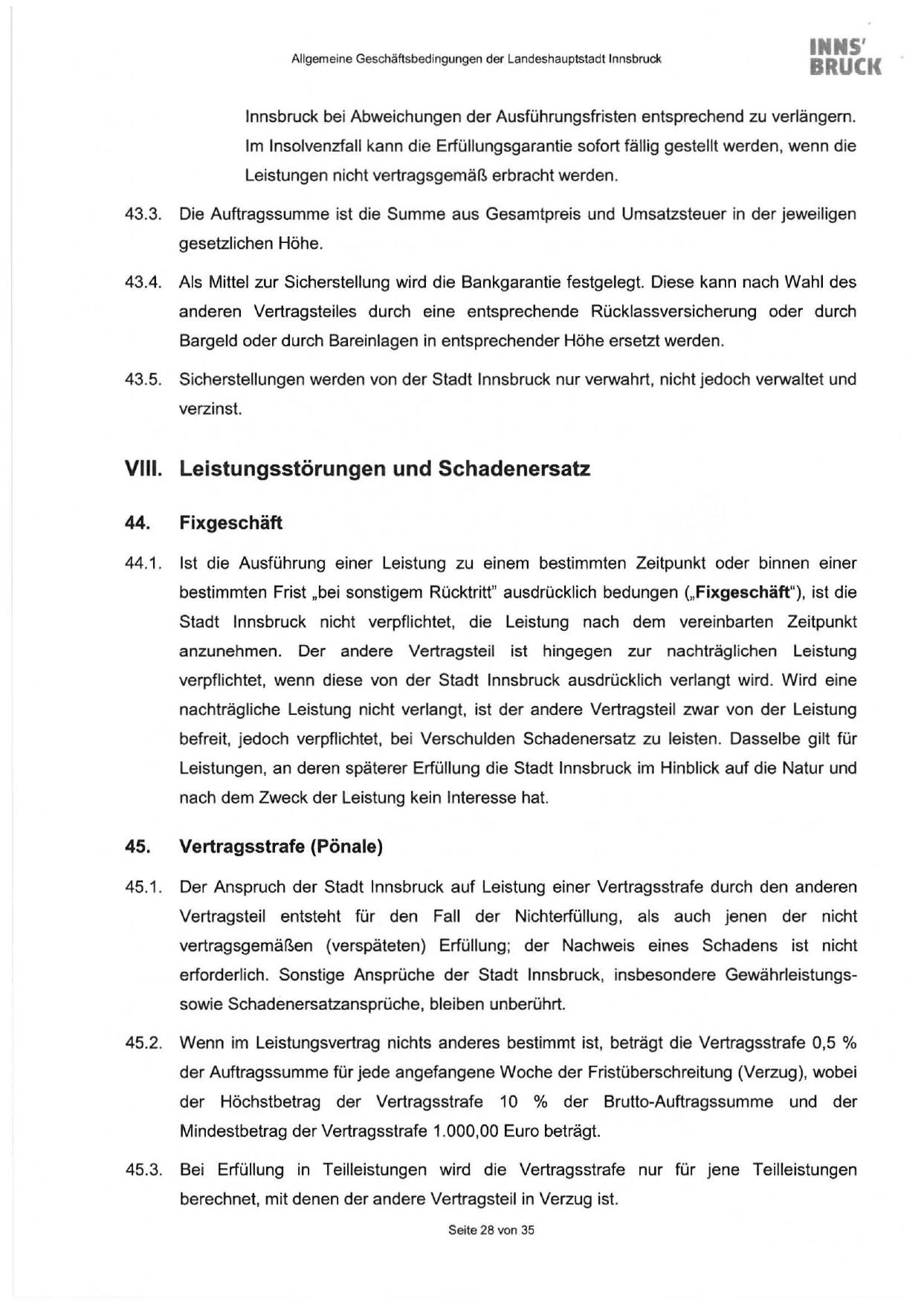 45.1 . Der Anspruch der Stadt Innsbruck auf Leistung einer Vertragsstrafe durch den anderen