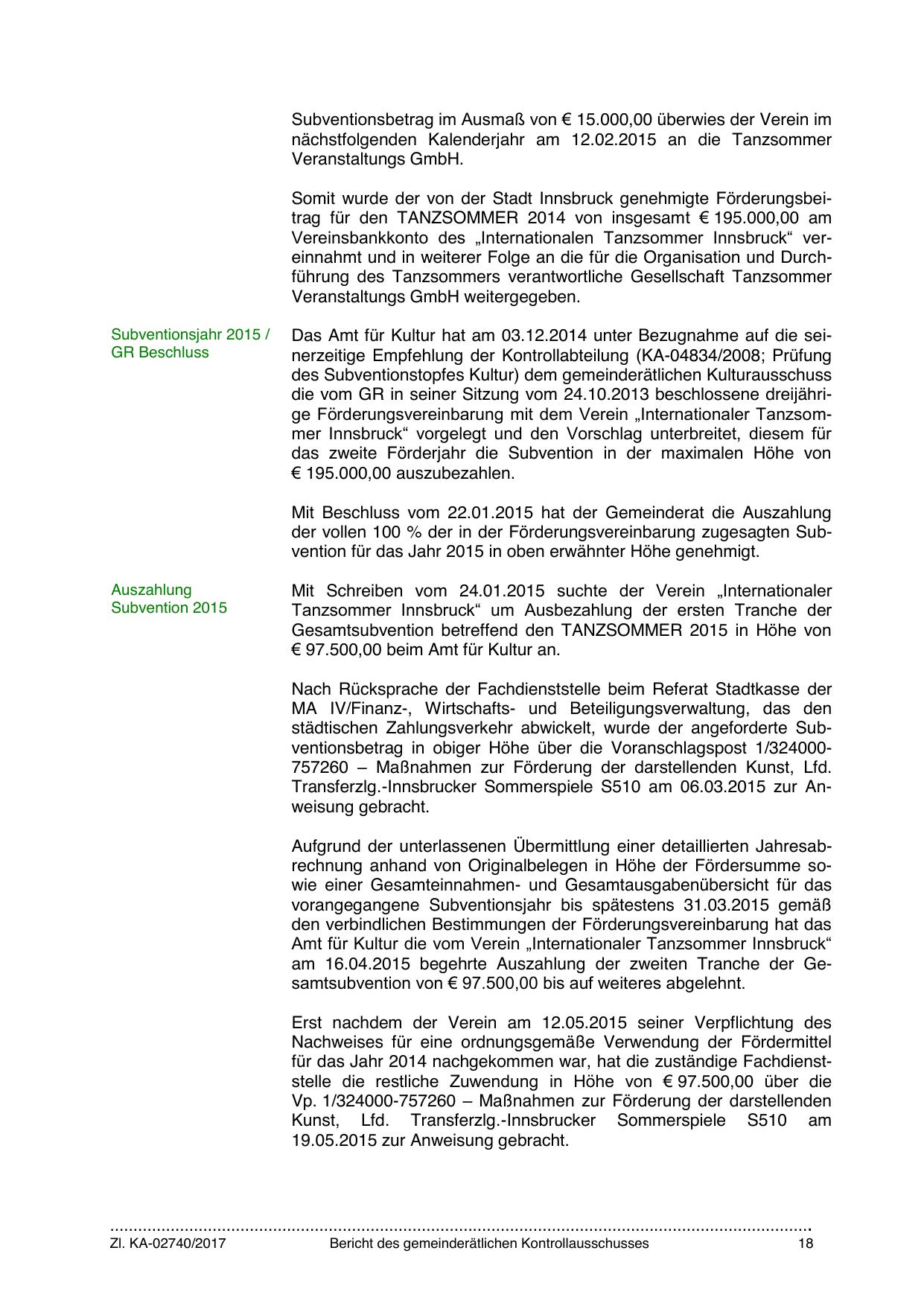 Somit wurde der von der Stadt Innsbruck genehmigte Förderungsbeitrag für den TANZSOMMER 2014 von insgesamt € 195.000,00 am