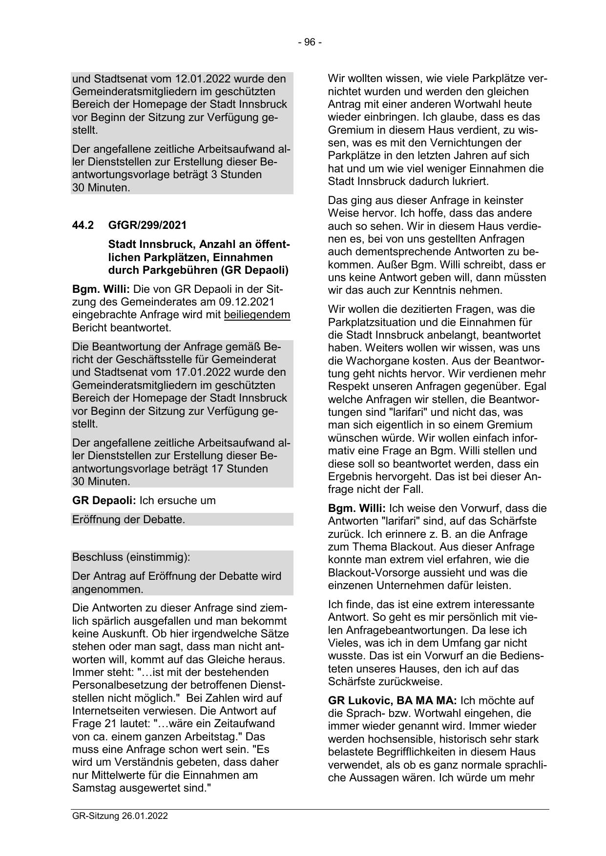 Bgm. Willi: Die von GR Depaoli in der Sitzung des Gemeinderates am 09.12.2021