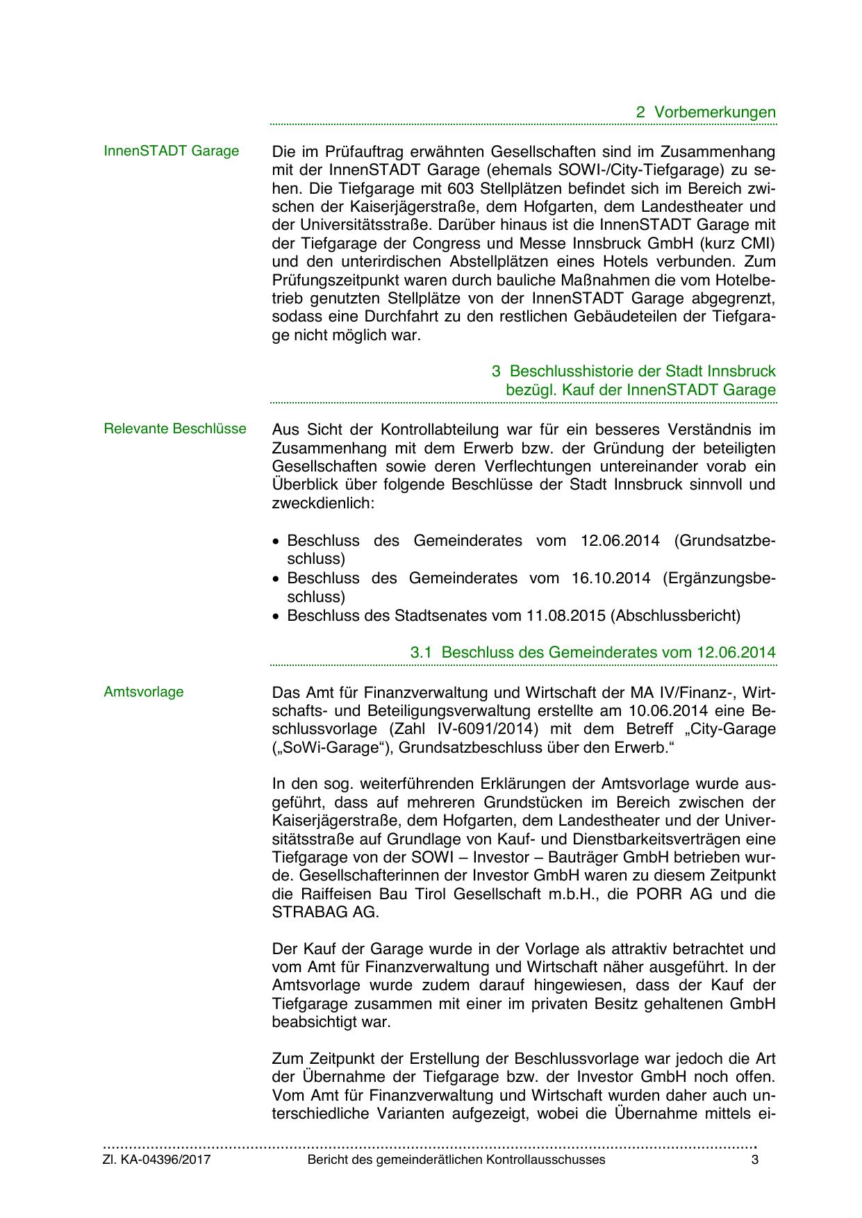 Das Amt für Finanzverwaltung und Wirtschaft der MA IV/Finanz-, Wirtschafts- und Beteiligungsverwaltung erstellte am 10.06.2014 eine Beschlussvorlage (Zahl IV-6091/2014) mit dem Betreff „City-Garage