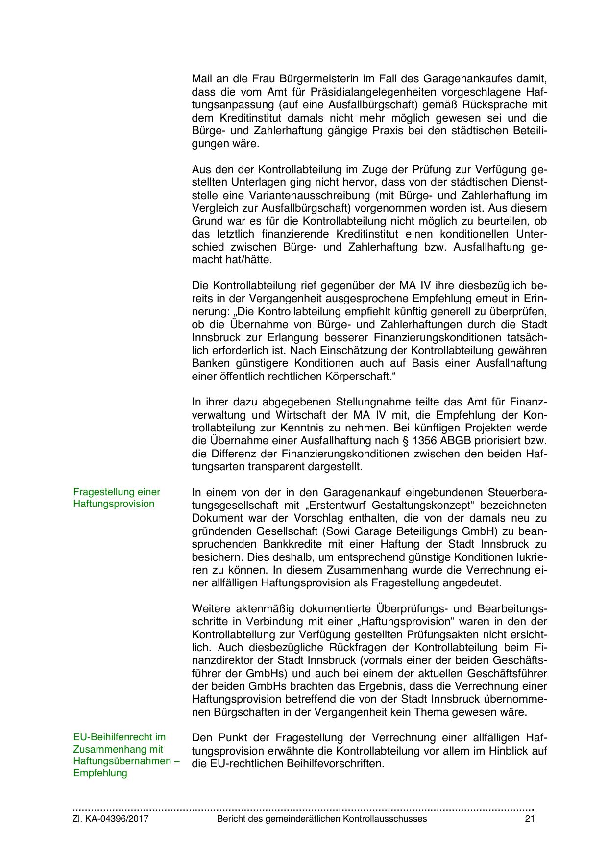 Haftungsprovision betreffend die von der Stadt Innsbruck übernommenen Bürgschaften in der Vergangenheit kein Thema gewesen wäre.