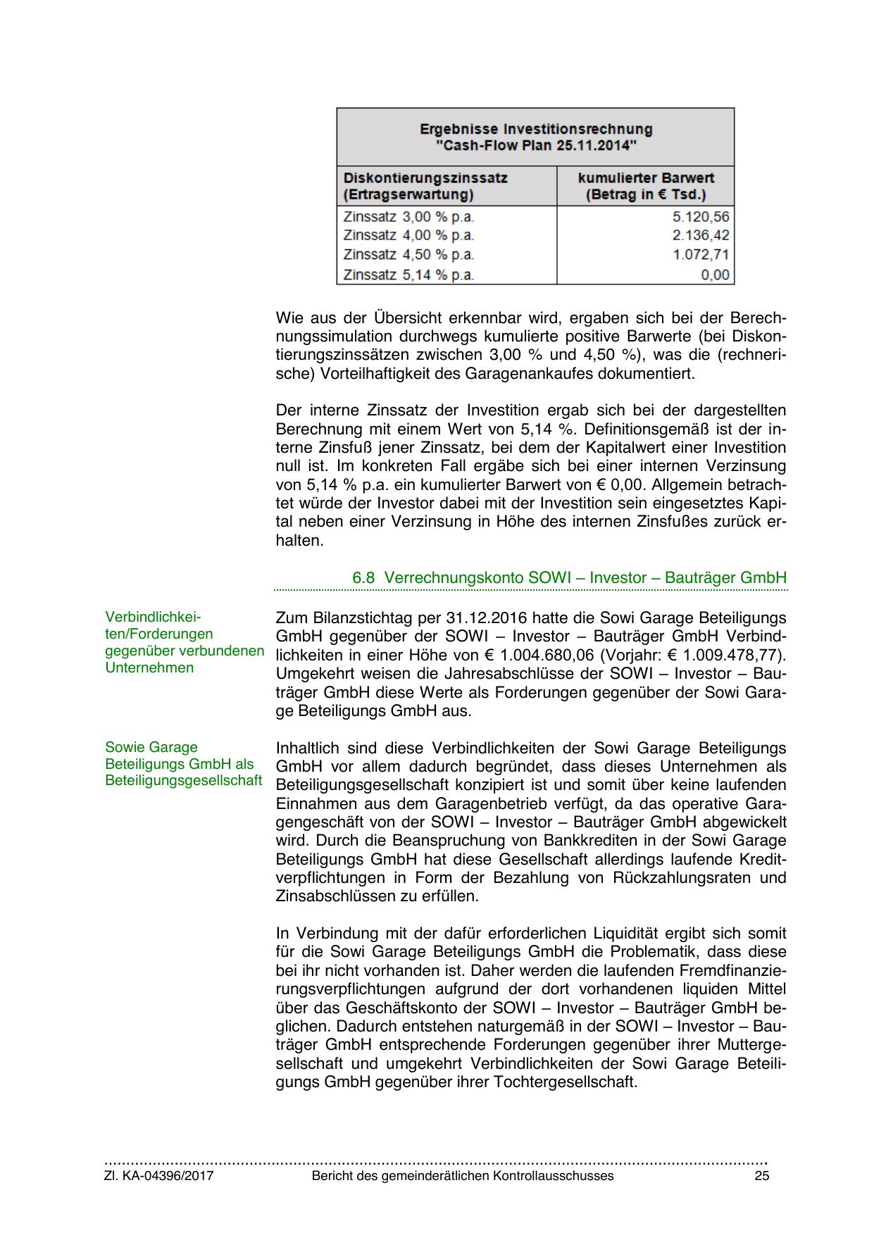 Umgekehrt weisen die Jahresabschlüsse der SOWI – Investor – Bauträger GmbH diese Werte als Forderungen gegenüber der Sowi Garage Beteiligungs GmbH aus.