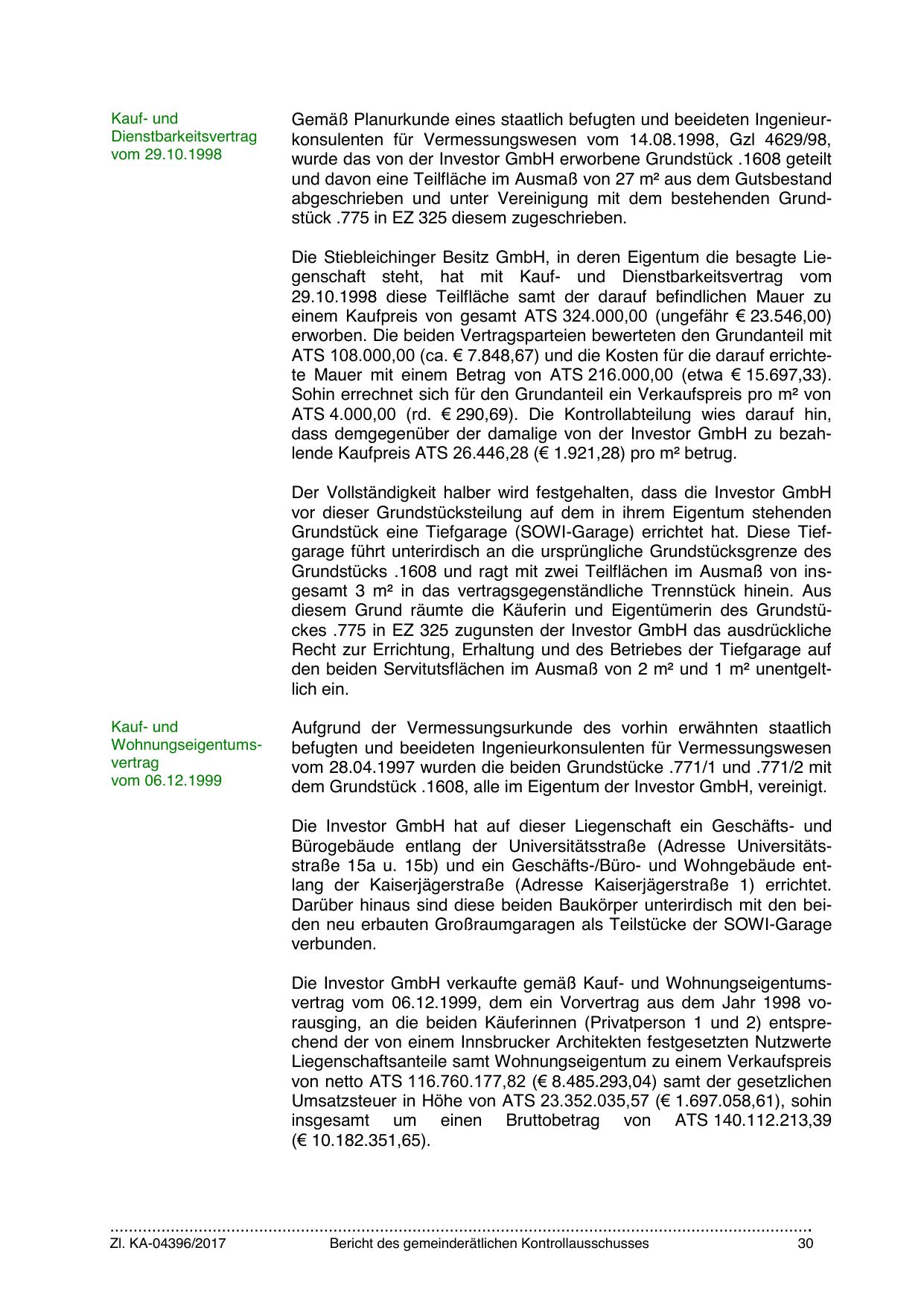dass demgegenüber der damalige von der Investor GmbH zu bezahlende Kaufpreis ATS 26.446,28 (€ 1.921,28) pro m² betrug.