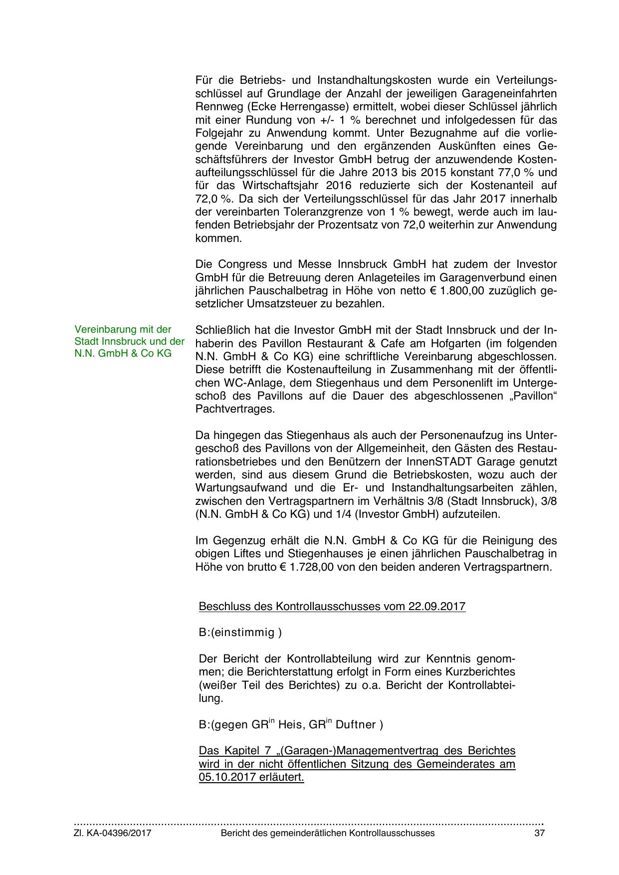 zwischen den Vertragspartnern im Verhältnis 3/8 (Stadt Innsbruck), 3/8