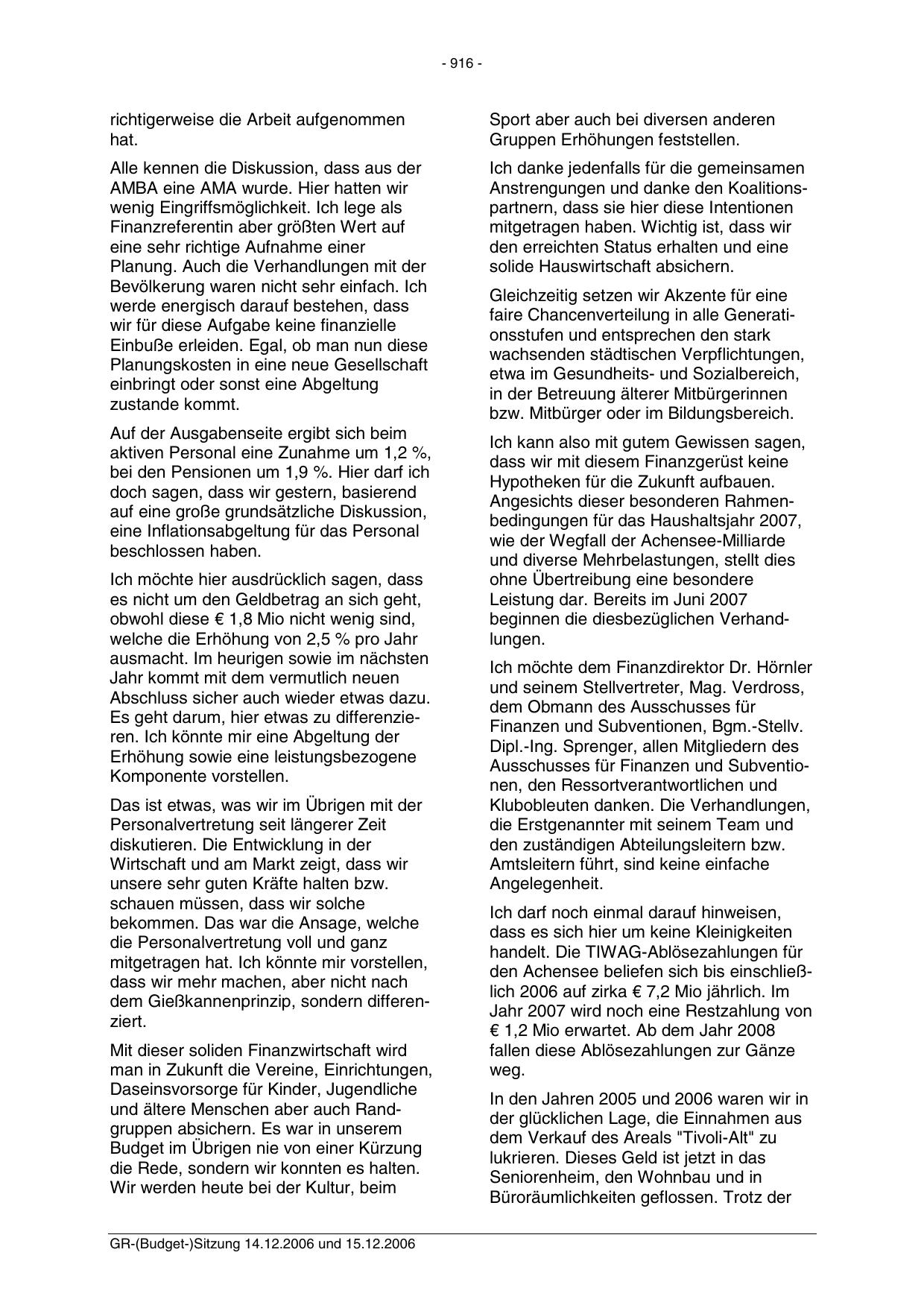 GR-(Budget-)Sitzung 14.12.2006 und 15.12.2006