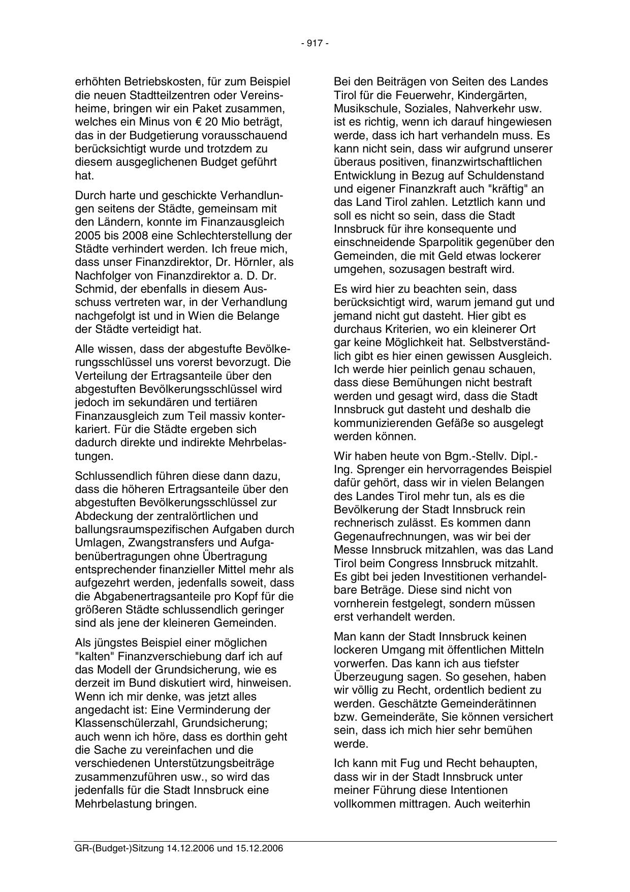 GR-(Budget-)Sitzung 14.12.2006 und 15.12.2006
