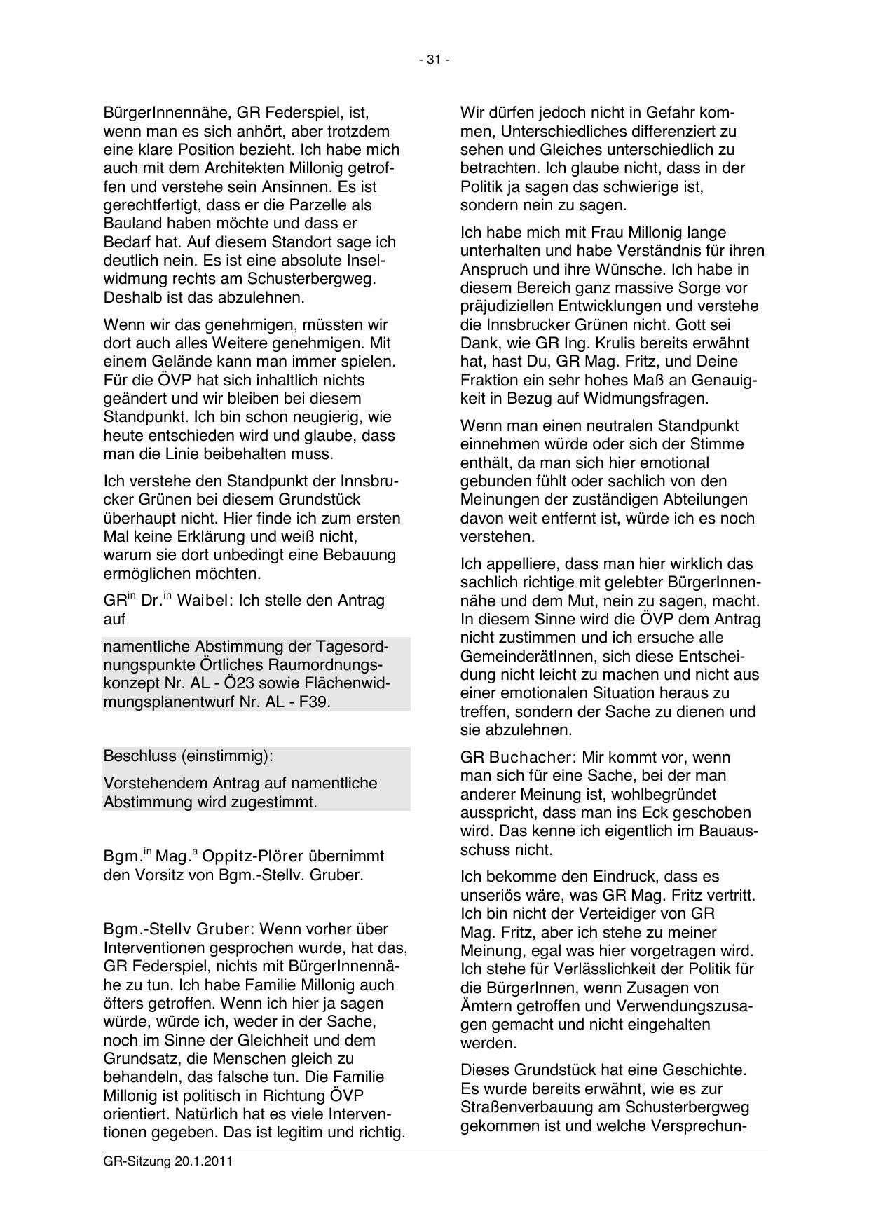 GR Federspiel, nichts mit BürgerInnennähe zu tun. Ich habe Familie Millonig auch