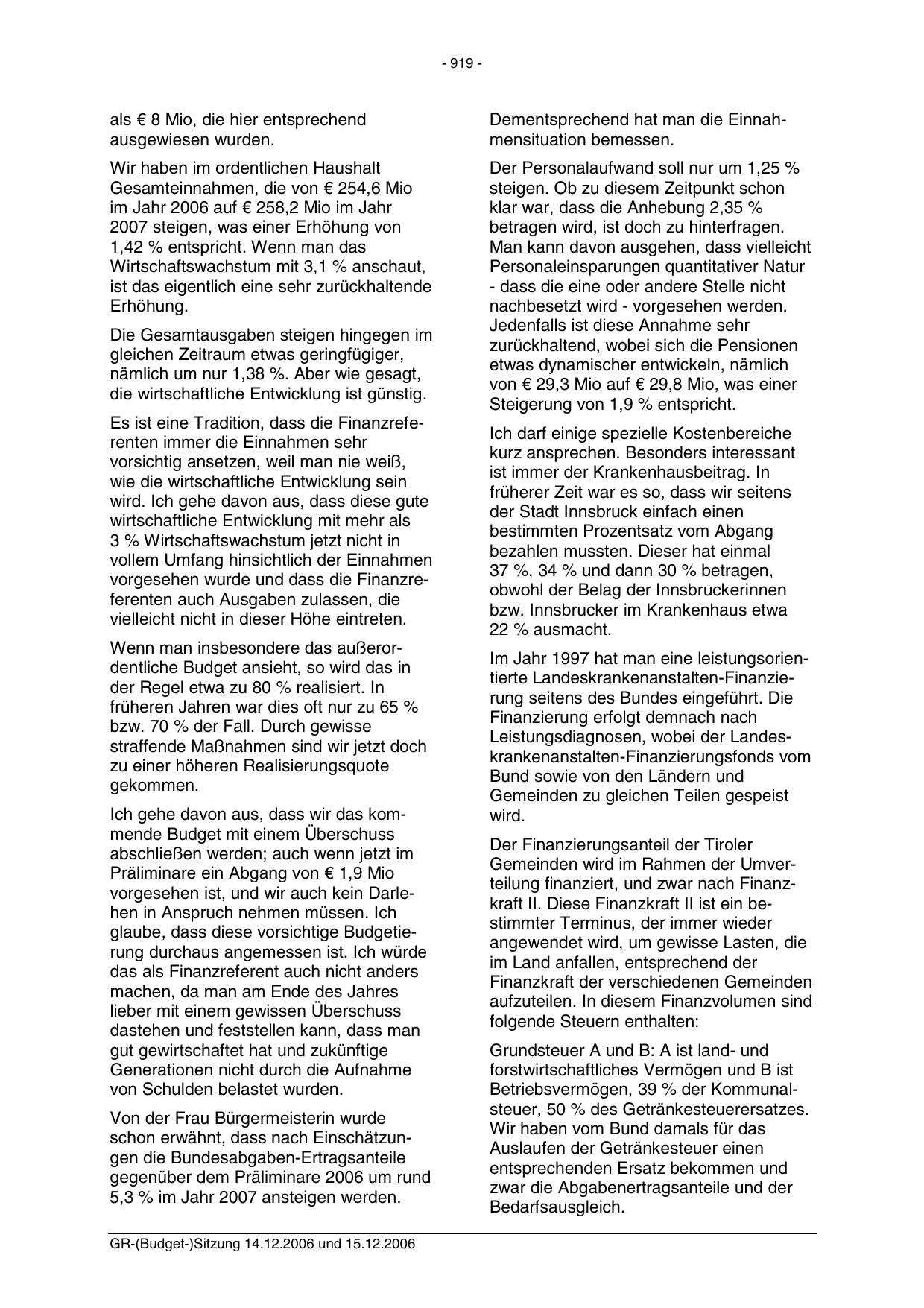 GR-(Budget-)Sitzung 14.12.2006 und 15.12.2006