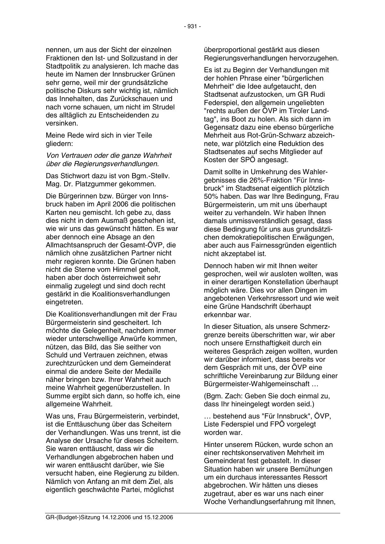 GR-(Budget-)Sitzung 14.12.2006 und 15.12.2006