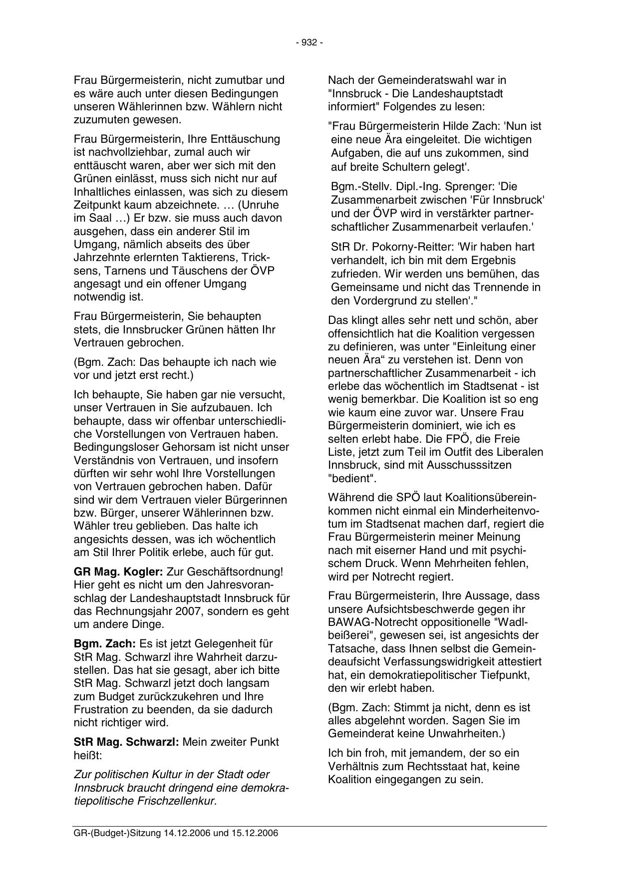 GR-(Budget-)Sitzung 14.12.2006 und 15.12.2006
