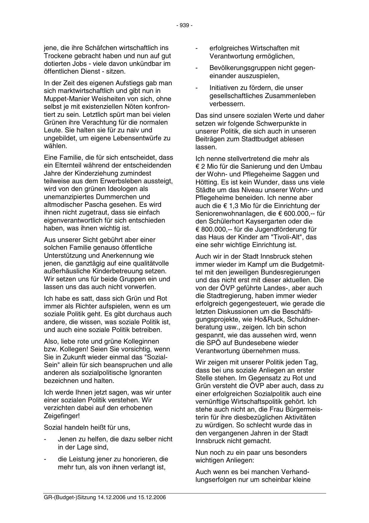 GR-(Budget-)Sitzung 14.12.2006 und 15.12.2006