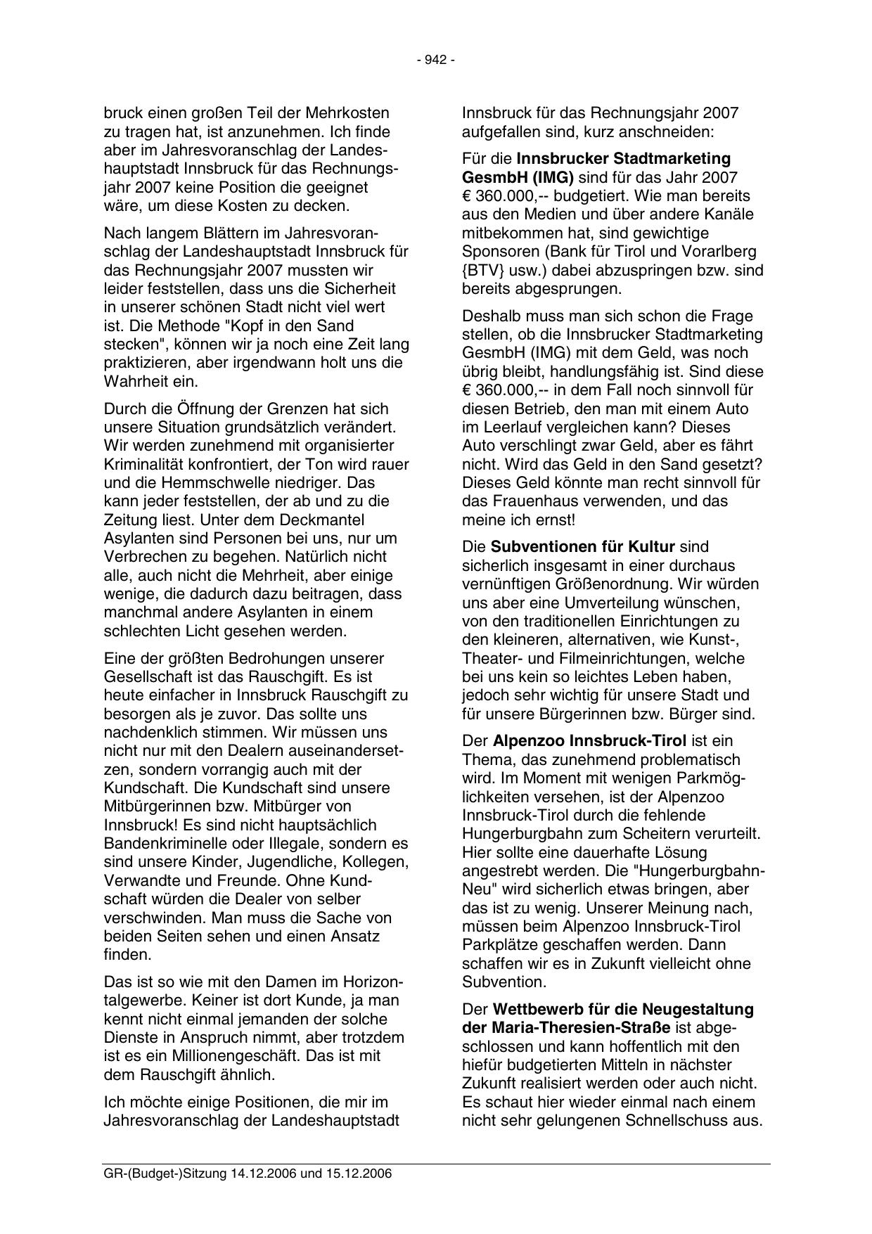 aber im Jahresvoranschlag der Landeshauptstadt Innsbruck für das Rechnungsjahr 2007 keine Position die geeignet