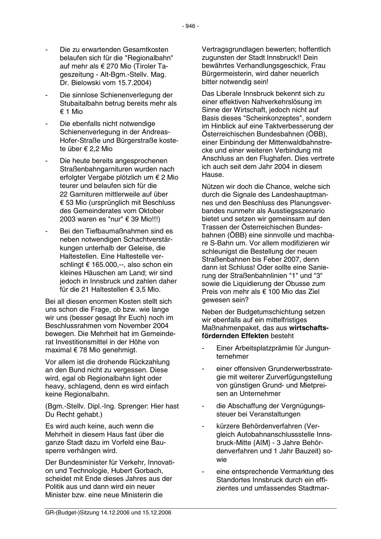 GR-(Budget-)Sitzung 14.12.2006 und 15.12.2006