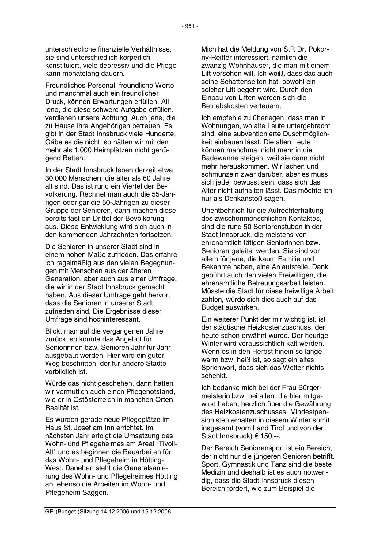 GR-(Budget-)Sitzung 14.12.2006 und 15.12.2006