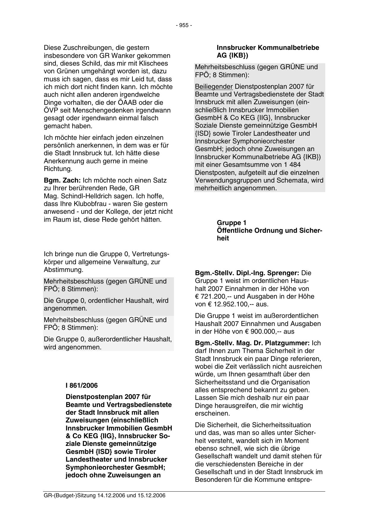 GR-(Budget-)Sitzung 14.12.2006 und 15.12.2006