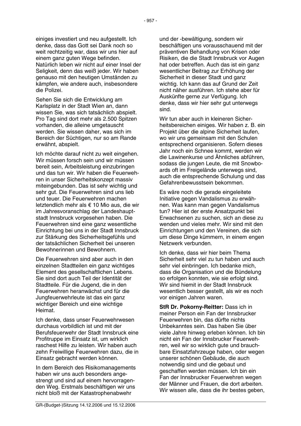 GR-(Budget-)Sitzung 14.12.2006 und 15.12.2006