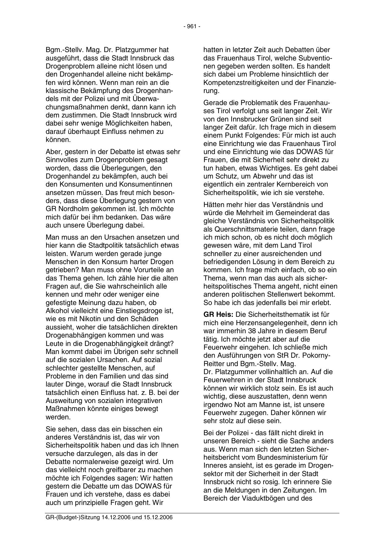 GR-(Budget-)Sitzung 14.12.2006 und 15.12.2006